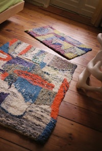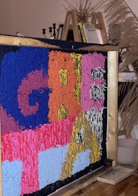 I got a tufting gun from my friends as a birthday present, it was the best present. I spent the winter making carpets. I made them in my bedroom. It left the memory of threads on the floor and spitting out pieces of wool. It’s better to have a different space.